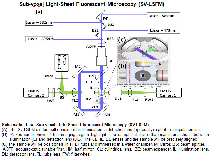 intersection of the illumination lens (IL) and detection lens (DL). (b) A laser light-sheet
