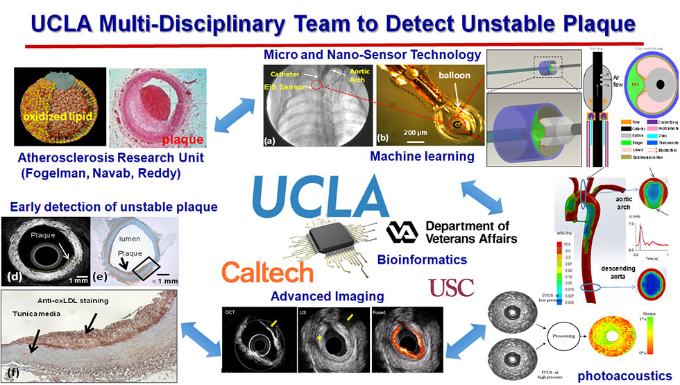 Our interdisciplinary efforts, including UCLA Atherosclerosis Research Unit (Fogelman, Navab, Reddy), UCLA Vascular Calcification (Demer and Tintut), UCLA Medical Imaging Bioinformatics (Bui), USC NIH Ultrasonic Transducer Resource Center (Shung), and UCLA and Caltech Micro- and Nano-Sensor Technology (Hsiai, Tai), UCLA/GLA Interventional Cardiology (Aksoy, Ebrahimi, Suh, Tobis), have provided new insights into the electrochemical strategy to characterize metabolically active plaque prone to rupture for patient-specific intervention.