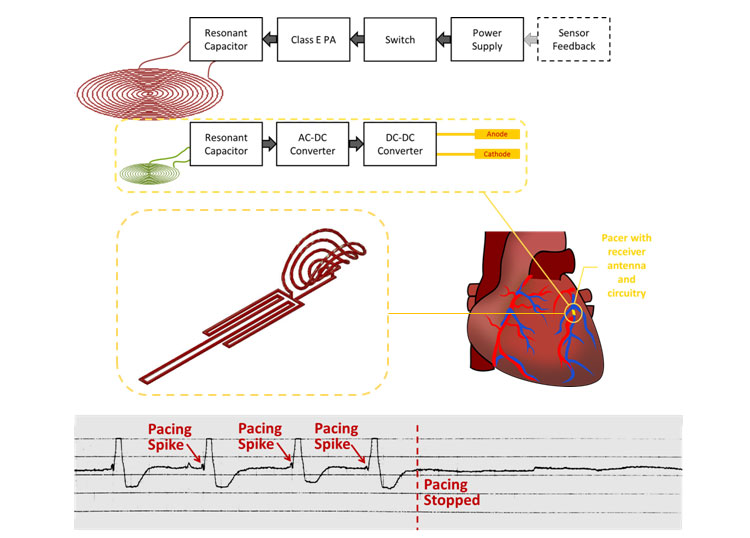 Despite great advancements in implantable cardiac pacemaker technology, complications from pacemaker leads continue to compromise nearly 10% of all implants. This has motivated significant research for the development of leadless devices. These include battery-based systems, power harvesting devices, and stimulators wirelessly powered through radiofrequency radiation. Our research is focused on the development of an inductive power transfer system with a remote stimulation control system. Our proposed system is capable of significantly improving power efficiency and reducing tissue energy absorption in a highly asymmetrical system in which the pacer is small enough to be intravascularly deployed and implanted with a stent-like fixation mechanism.